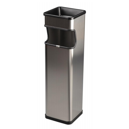 Напольная пепельница уличная прямоугольная Nofer 14124.2.S выполнена из нержавеющей стали матового оттенка, сорт нержавейки AISI 430. Пепельница также имеет бак для мусора небольшого объема на 24 литра. Корпус пепельницы выполнен в прямоугольной форме.