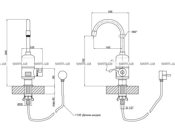 - Диаметр подключения 1/2"