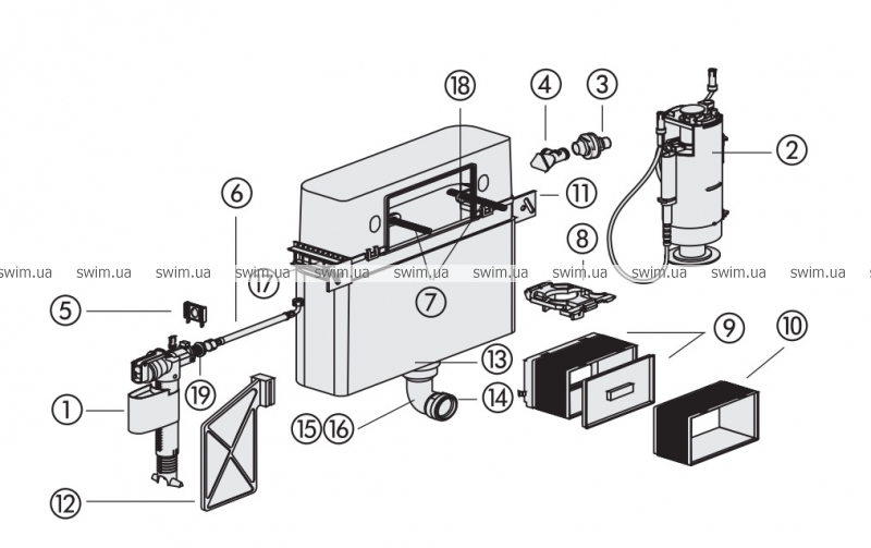 Крепежные уголки (2 шт.) к смывным бачкам Sanit 983C, CC-120-S-FO-2V-2C и CC-120-S-TO-2V-1C для скрытого монтажа с малым ревизионным отверстием