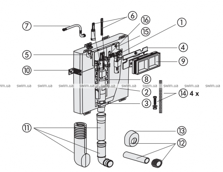 Уголки для крепления (2 шт.) к смывному бачку Sanit CC-80-M-FO-2V-L для скрытого монтажа со средним ревизионным отверстием и глубиной монтажа - 8 см