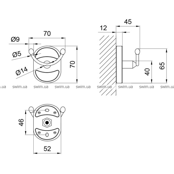 - Габариты изделия (ВхШхГ), мм 70х70х45