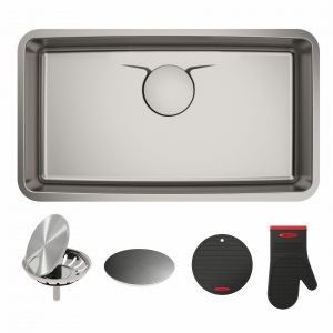 Комплект включает в себя: мойку серии Dex™; сливной фильтр ST-4 VersiDrain ™, Крышку сливного фильтра STC-1 DrainAssure ™, Черную силиконовую перчатку KSM-1 Black Silicone Mitt, Черную силиконовую подставку KST-1 Black Silicone Trivet