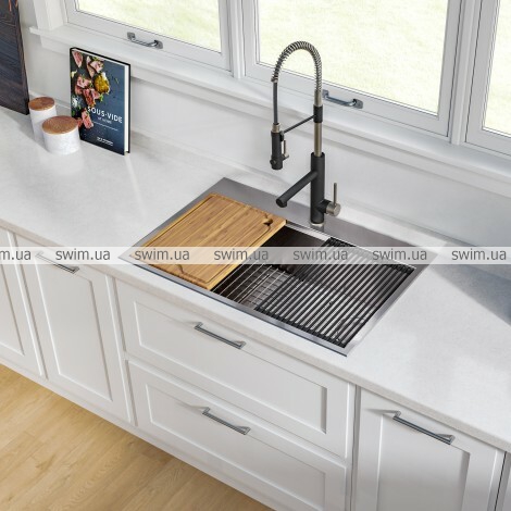- Продуманный дизайн увеличивает ценное пространство рабочего стола, позволяя работать прямо над мойкой, поэтому идеально подходит для кухни любого размера