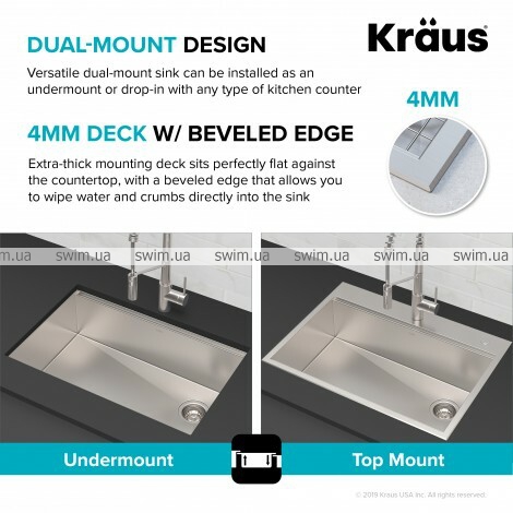 - ДИЗАЙН с прочным 4-миллиметровым бортиком позволяет устанавливать мойку двумя способами монтажа : снизу под столешницу или сверху, встраивая ее в кухонный стол любого типа