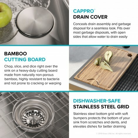 Kore ™ - идеальная раковина для современного домашнего шеф-повара. Рабочая станция Kore ™ мгновенно превращает мойку в подготовительную станцию с полным обслуживанием. Комплектация дополнительными принадлежностями, такими как универсальная подставка для сушки посуды и бамбуковая разделочная доска, а также ультра-функциональный дизайн с интегрированной системой выступов позволяет мыть, сушить, измельчать и нарезать продукты, не теряя ни сантиметра ценного пространства на столе. Ваша помощница изготовлена из нержавеющей стали толщиной 1,5 мм и является одной из самых прочных и долговечных моек на рынке. Усовершенствованный современный дизайн - это мгновенная модернизация любой домашней кухни. Поднимите функциональность вашей кухни на совершенно новый уровень с мойкой из серии рабочих станций Kore ™ от Kraus и ощутите разницу.