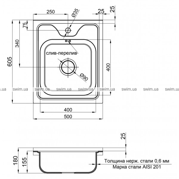 Кухонная мойка Lidz 5060 0,6 мм Decor LIDZ506006DEC