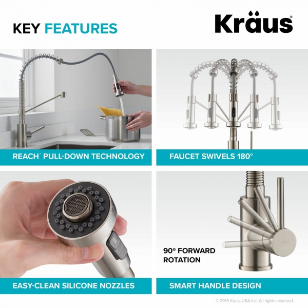 - КОММЕРЧЕСКИЙ СТИЛЬНЫЙ СМЕСИТЕЛЬ высотой 457 мм оптимизирован для установки практически под любым кухонным шкафом. Изготовлен из прочной латуни в отделке цвета нержавеющей стали