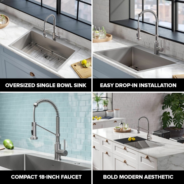 Мойка Loften™ из нержавеющей стали большой вместимости со смещенным вправо сливом, прямыми стенками и углами малого радиуса придаст вашей кухне современный вид. Удобная конфигурация с двумя типами монтажа позволяет устанавливать ее как под мойку, так и сверху на кухонную стойку любого типа. Изготовлена вручную из высококачественной нержавеющей стали T304, имеет пологое дно и канавки, обеспечивающие превосходный слив. Поставляется в паре со смесителем с выдвижной лейкой и пружинным изливом для создания целостного образа и оптимальной эффективности.