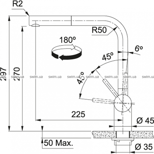 - Довжина виливу 225 мм