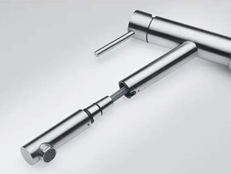 Користуватися цим змішувачем надзвичайно зручно завдяки висувному витоку зі шлангом довжиною 150 см.
