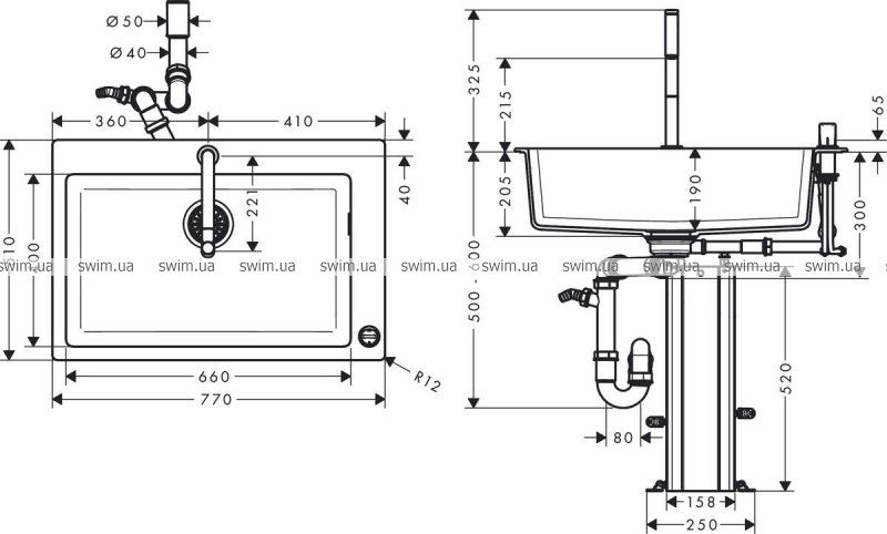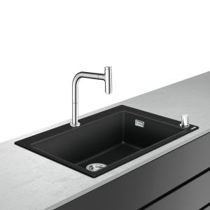 - комплект состоит из: мойки, однорычажного смесителя, sBox, кнопка Select, сифона