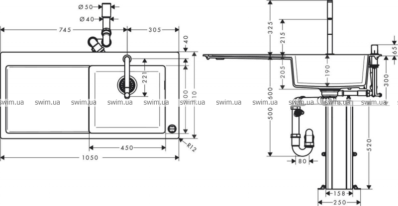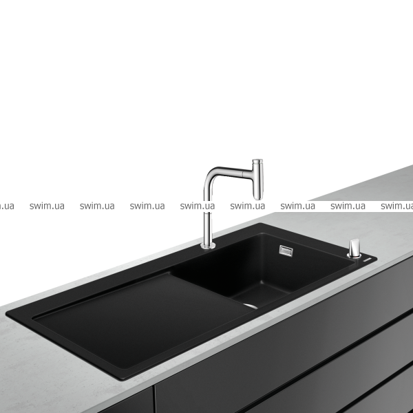 - комплект состоит из: мойки, однорычажного смесителя, sBox, кнопка Select, сифона