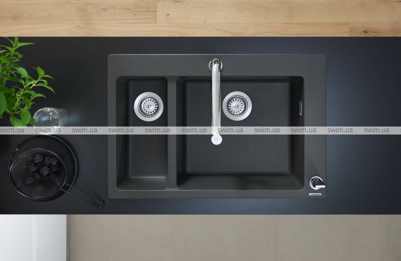 • комплект состоит из: мойки, однорычажного смесителя, sBox, кнопка Select, сифона