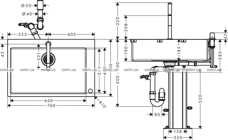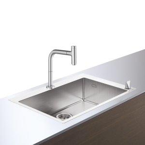 - комплект состоит из: встраиваемой мойки, однорычажного смесителя, sBox, кнопка Select, сифона