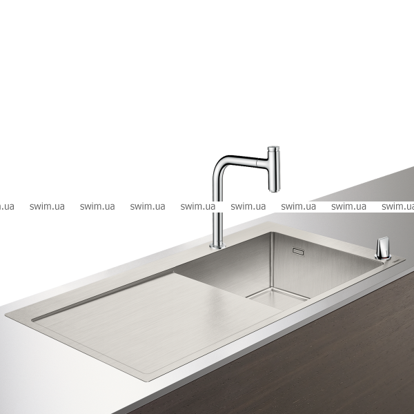 - комплект состоит из: встраиваемой мойки, однорычажного смесителя, sBox, кнопка Select, сифона