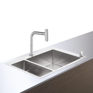 - комплект состоит из: встраиваемой мойки, однорычажного смесителя, sBox, кнопка Select, сифона