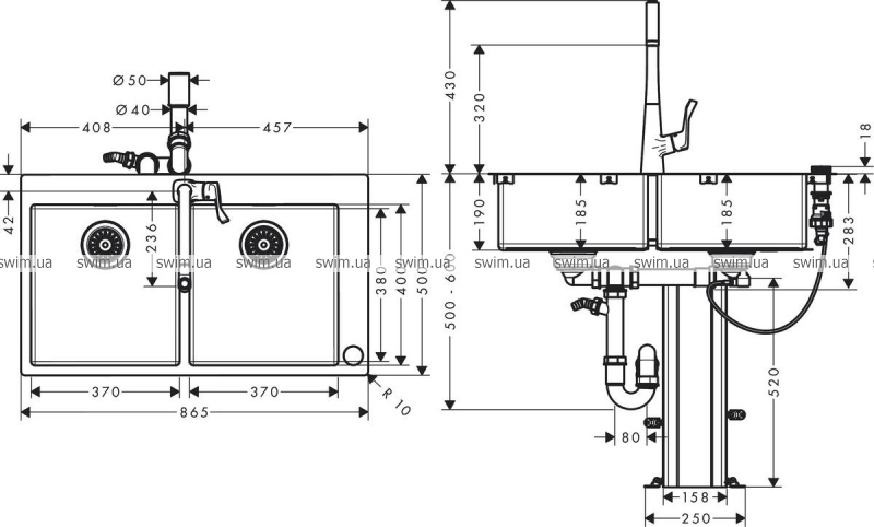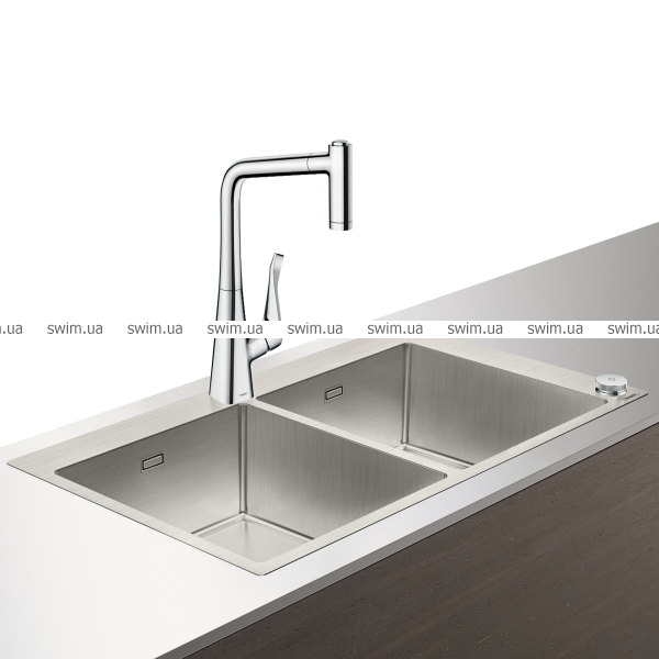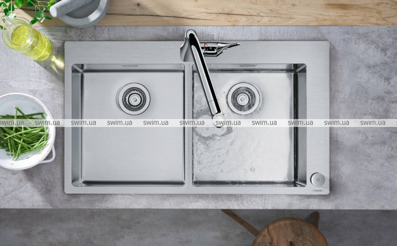 - комплект состоит из: встраиваемой мойки, однорычажного смесителя, sBox, кнопка Select, сифона