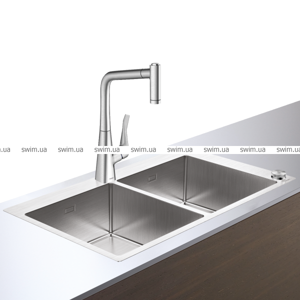 - комплект состоит из: встраиваемой мойки, однорычажного смесителя, sBox, кнопка Select, сифона