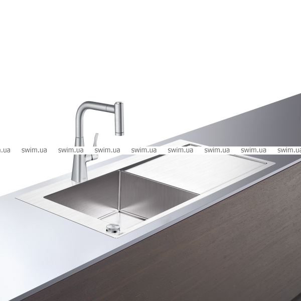 - комплект состоит из: мойки, однорычажного смесителя, sBox, кнопка Select, сифона