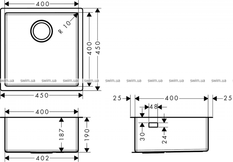 - радиус угла: 10 мм