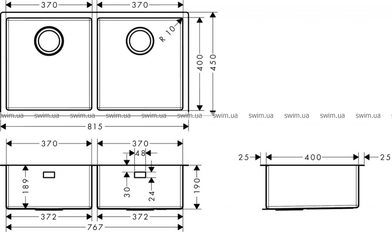 - радиус угла: 10 мм