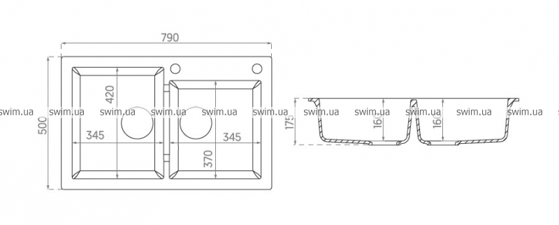 Мийка Mojito 140, H-175 790x500мм, бежевий 20 Axis Group ПОЛЬЩА
