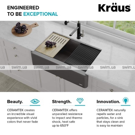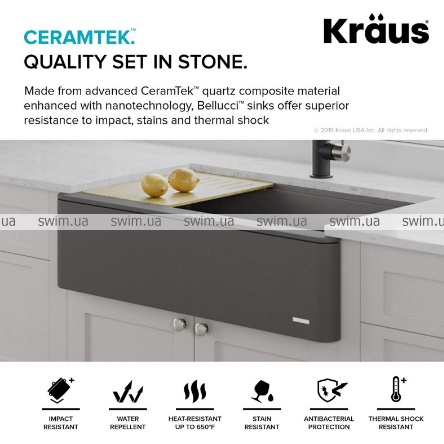 Кварцево-композитная кухонная мойка Kraus Bellucci KGF1-30 Charcoal