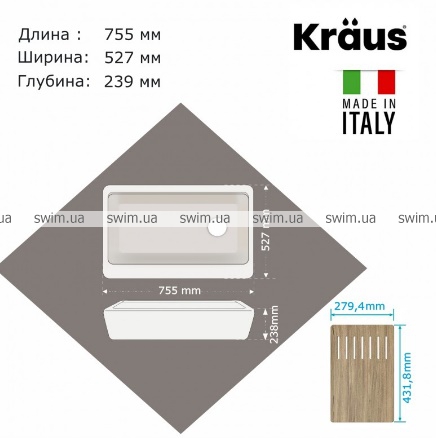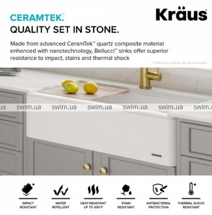 Кварцево-композитная кухонная мойка Kraus Bellucci KGF1-30 White