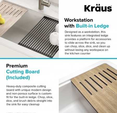 Мойки Bellucci™, рассчитанные на длительный срок службы, устойчивы к ударам, царапинам и пятнам, что обеспечивает их долговечность, надежность и стиль. Встроенная планка рабочей станции служит платформой для аксессуаров, которые скользят по раковине, так что вы можете работать, не теряя места на кухонном столе. Чтобы помочь вам оптимизировать ваше рабочее место, в комплект поставки входит разделочная доска премиум-класса с уникальным современным дизайном.