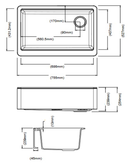 - Размеры чаши (ДхШхВ): 686х431х254 мм