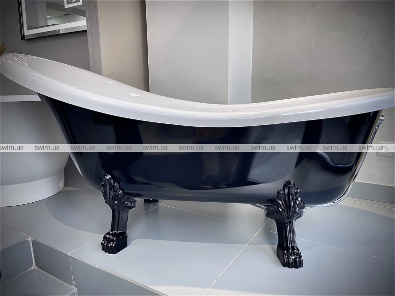 Ванна, що окремо стоїть, з литого мармуру зі зливним отвором у підлозі і переливом. Ванна відрізняється високою міцністю, теплопровідністю і може бути встановлена біля стіни або серед кімнати. Ніжки до ванни та сифон з переливом можуть бути у кількох кольорових виконаннях, комплектуються до ванни додатково та не включені у вартість.