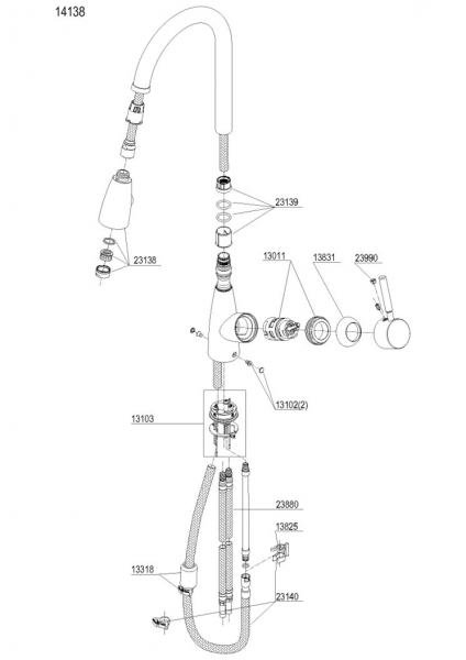 - Лейка для вытяжного душа на смеситель Kafe 14138