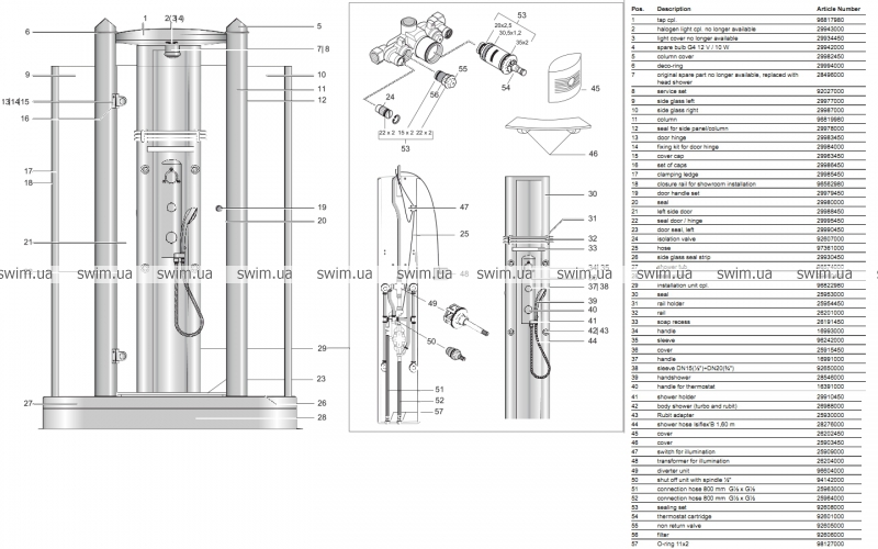 - Левое боковое стекло для душевой кабины Hansgrohe Temple 100 ML40