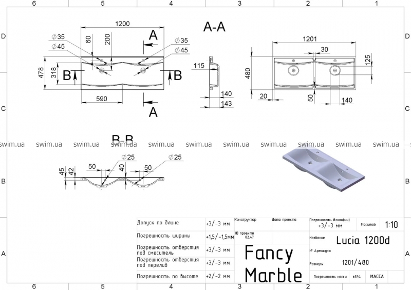 Умивальник Fancy Marble Lucia 1200D 1312203