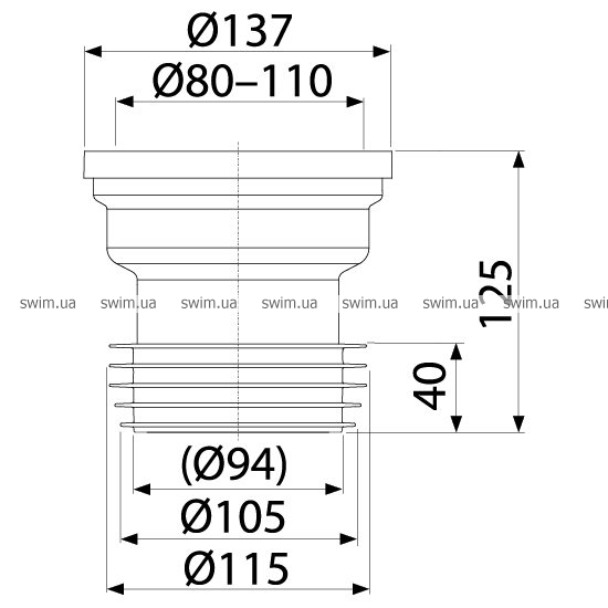 A991 ПАТРУБОК ДЛЯ УНИТАЗА ПРЯМОЙ