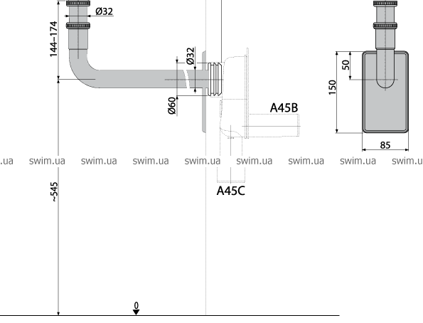 - Предназначен для использования со скрытыми сифонами A45B, A45C