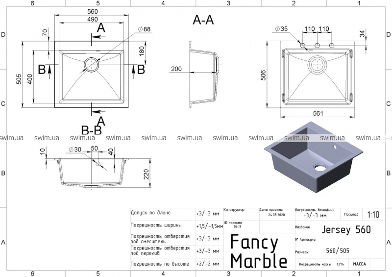 - Матеріал: Magranit гранітний композит (смола та гранітна крошка)