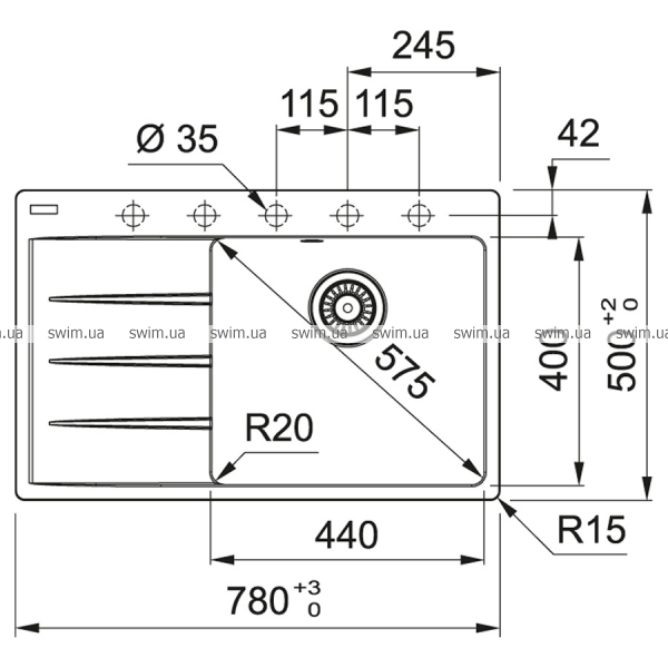 - Розміри мийки 780х500 мм