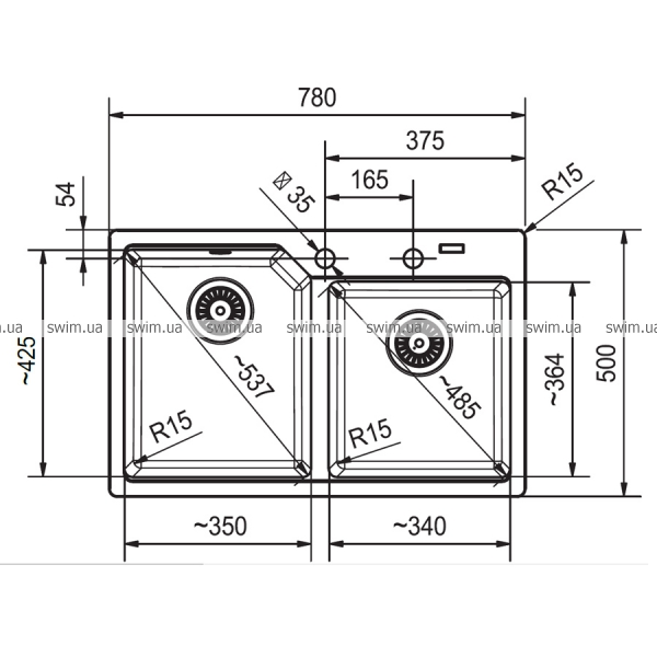 • Комплектація ручний вентиль і перелив чорного матового кольору, муфту для встановлення змішувача та сифон