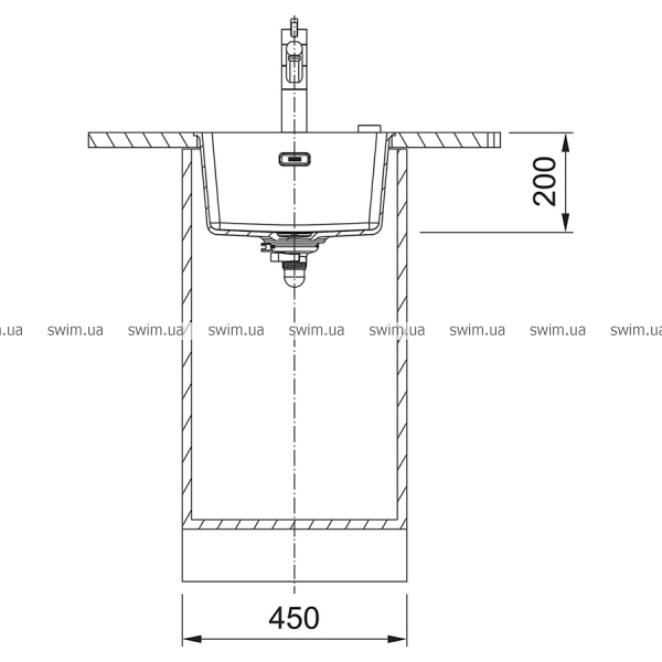 - Комплектація автоматичний вентиль, декоративна кришка, перелив і ручка управління вентилем чорного матового кольору, муфта для встановлення змішувача, сифон, шаблон вирізу