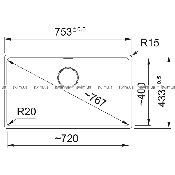 - Розміри мийки 753х433 мм