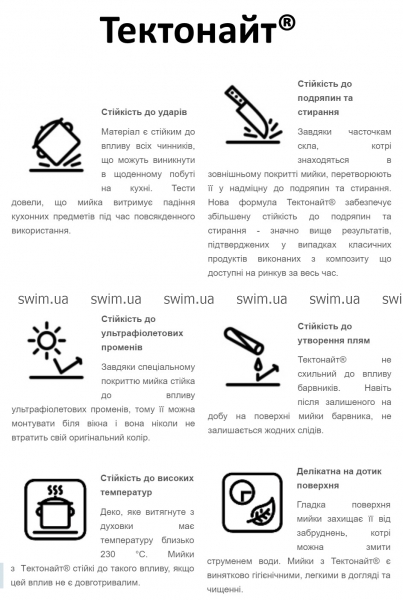 Базою для створення мийок з ТЕКТОНАЙТ є кварцовий матеріал дуже високої якості. Новітній матеріал PiMC забезпечує захисне покриття мийки, завдяки чому вона набуває свої унікальні властивості.