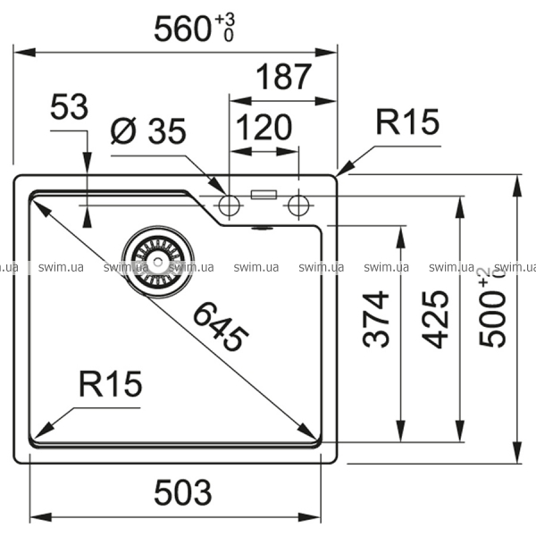 - Розміри мийки 560х500 мм