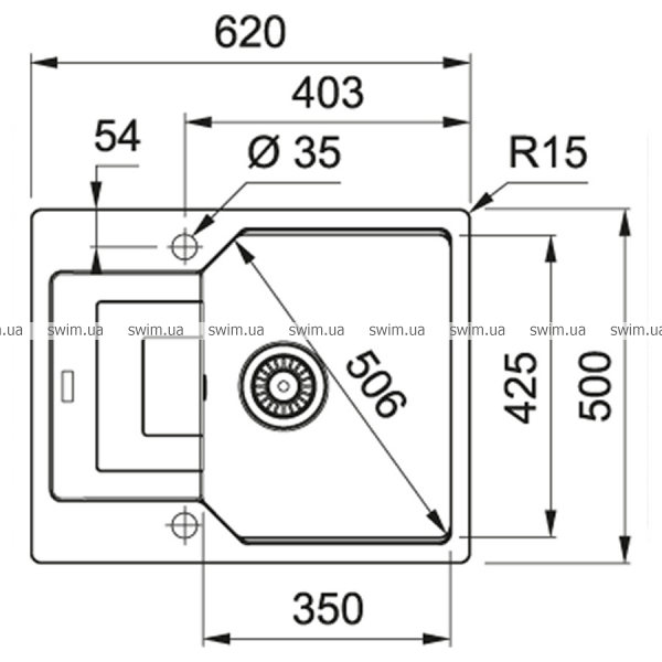 - Розміри мийки 620х500 мм