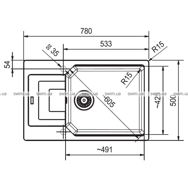 - Комплектація ручний вентиль і перелив чорного матового кольору, коландер і муфта для встановлення змішувача, сифон, кріплення стандартні