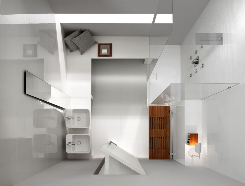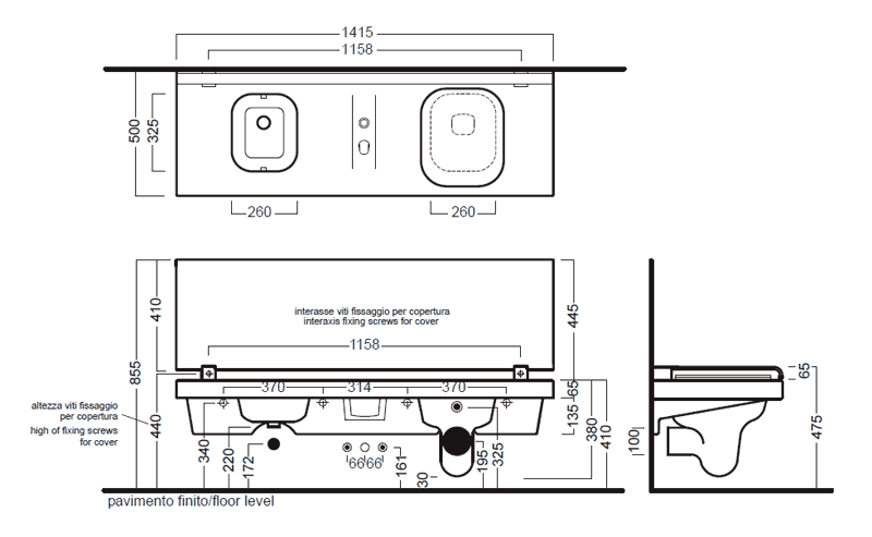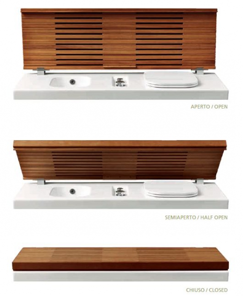 Многоцелевая система с встроенным унитазом и биде (без перелива), правостороннее исполнение унитаза. Комплект включает смеситель для биде с двойным подводом воды, бесконтактную кнопку слива, сиденье с механизмом плавного опускания и быстроразъемным фиксатором, крышку из цельного дерева с фрикционным механизмом закрытия и раскрытия. Установка с помощью специального двустороннего кронштейна, к которому крепится сливной бачок Geberit “Unica +”. может дополняться белым выдвижным ящиком G-Full 140.