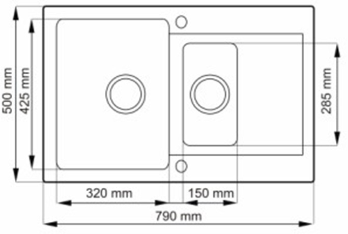 - Габариты мойки Ш*Г*В: 79*50*18 см