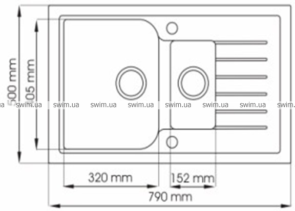 - Габариты мойки Ш*Г*В: 79*50*17 см