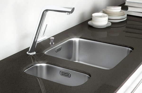 - Монтаж мойки под столешницу придает особую привлекательность кухне и облегчает уход за рабочей поверхностью
