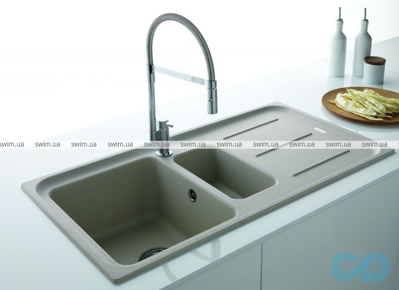 - Мойка превосходно сочетается с хромированными и цветными смесителями